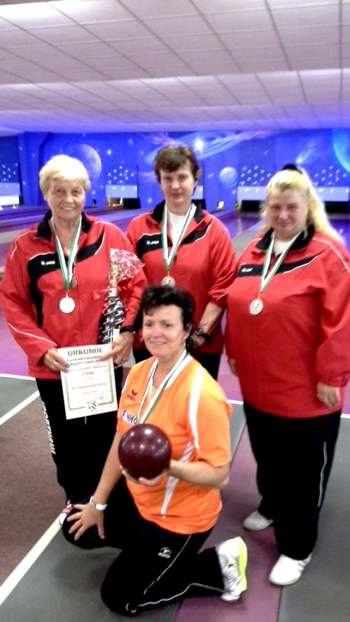 Petra Werner - Teambeste mit 428 Kegel und auch Elke Wentzsche mit 422 Kegel, Petra Wilde mit 392 Kegel (alle Seniorinnen A "Ü50") und Hannelore Hörtsch (Seniorinnen C "Ü70") mit 393 Kegel zeigten gute Leistungen und trugen somit zum erfolgreichen Abschneiden und dem 2. Platz bei. Mit diesem Gesamtergebnis von 1635 Kegel musste man mit nur 11 Kegel weniger der Mannschaft von SV Pesterwitz den Vortritt lassen, die mit Platz 1 für die Deutsche Vereinsmannschaftsmeisterschaft am 20.06.2015 in Schkopau qualifiziert ist!